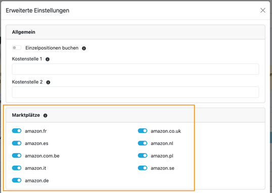 Standardmäßig importieren wir Umsätze aller Marktplätze.