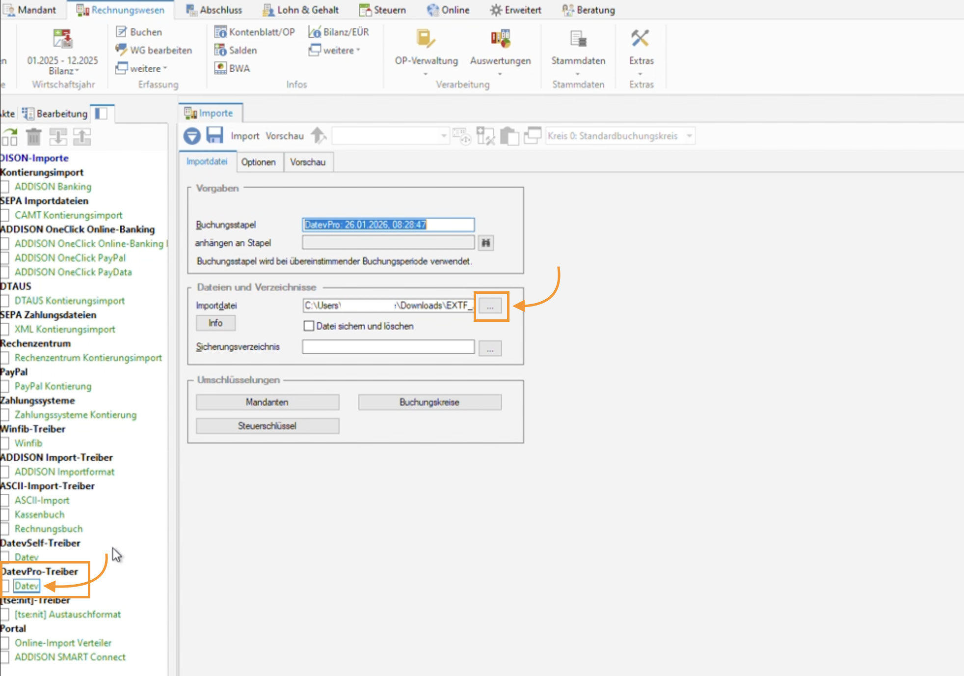 Wähle links unter „DATVPro Treiber“ den Punkt „DATEV“