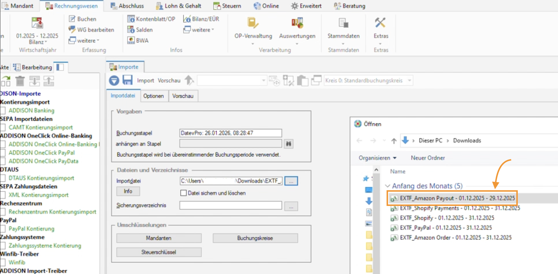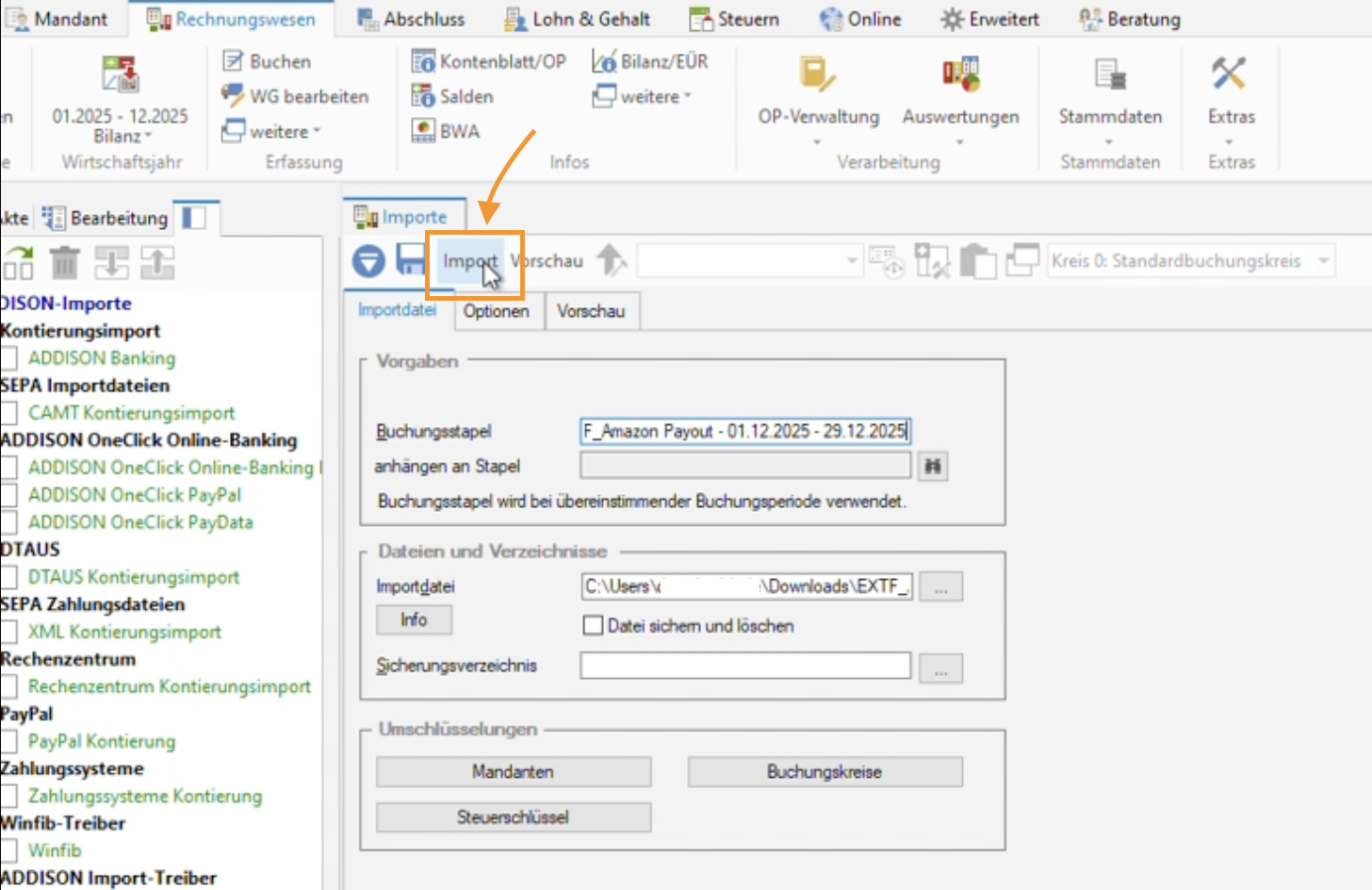 DATEV CSV Export in Addison importieren