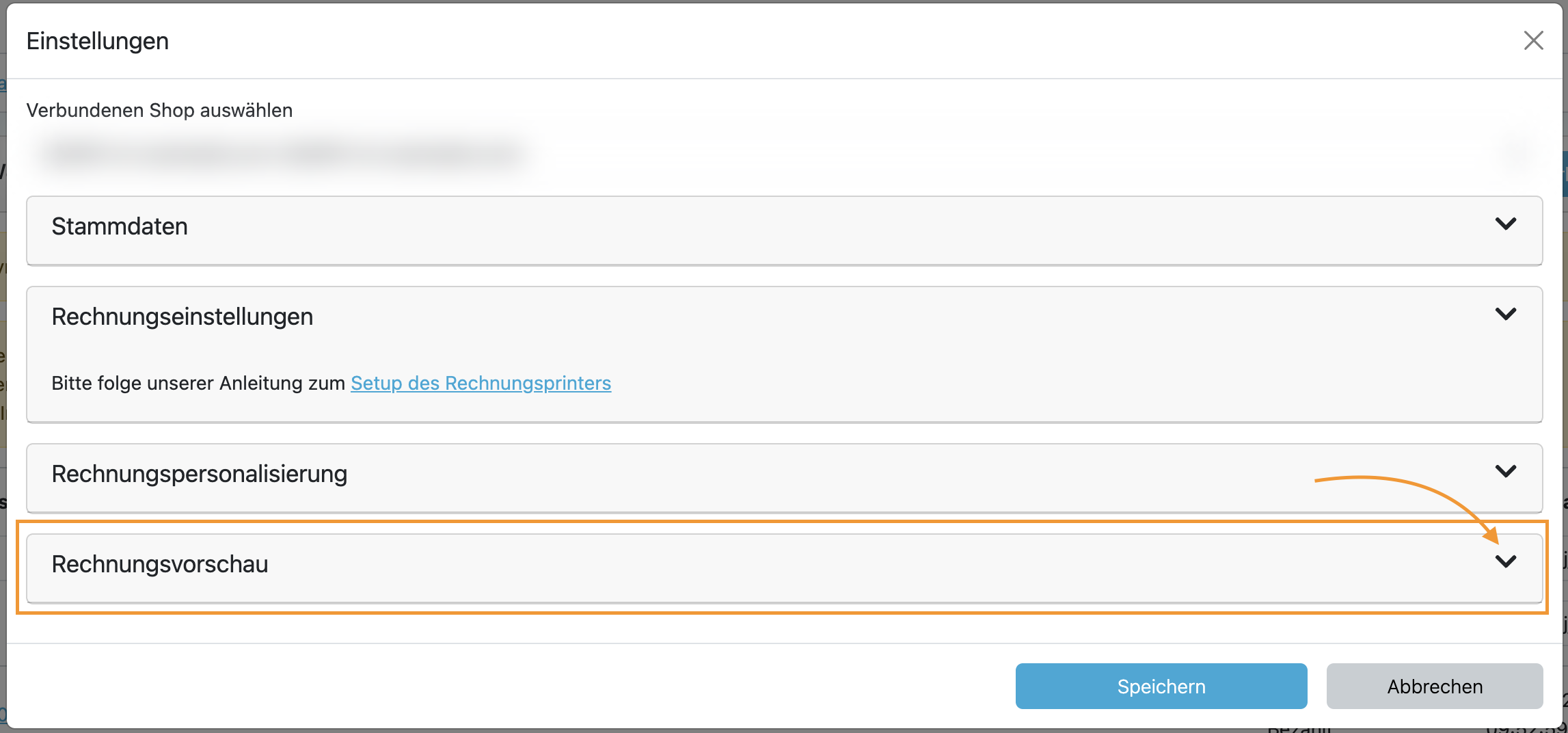 Scrolle nach unten zum Dropdown „Rechnungsvorschau“.