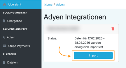 - Klicke bei dem gewünschten Shop auf den blauen Button „Import“