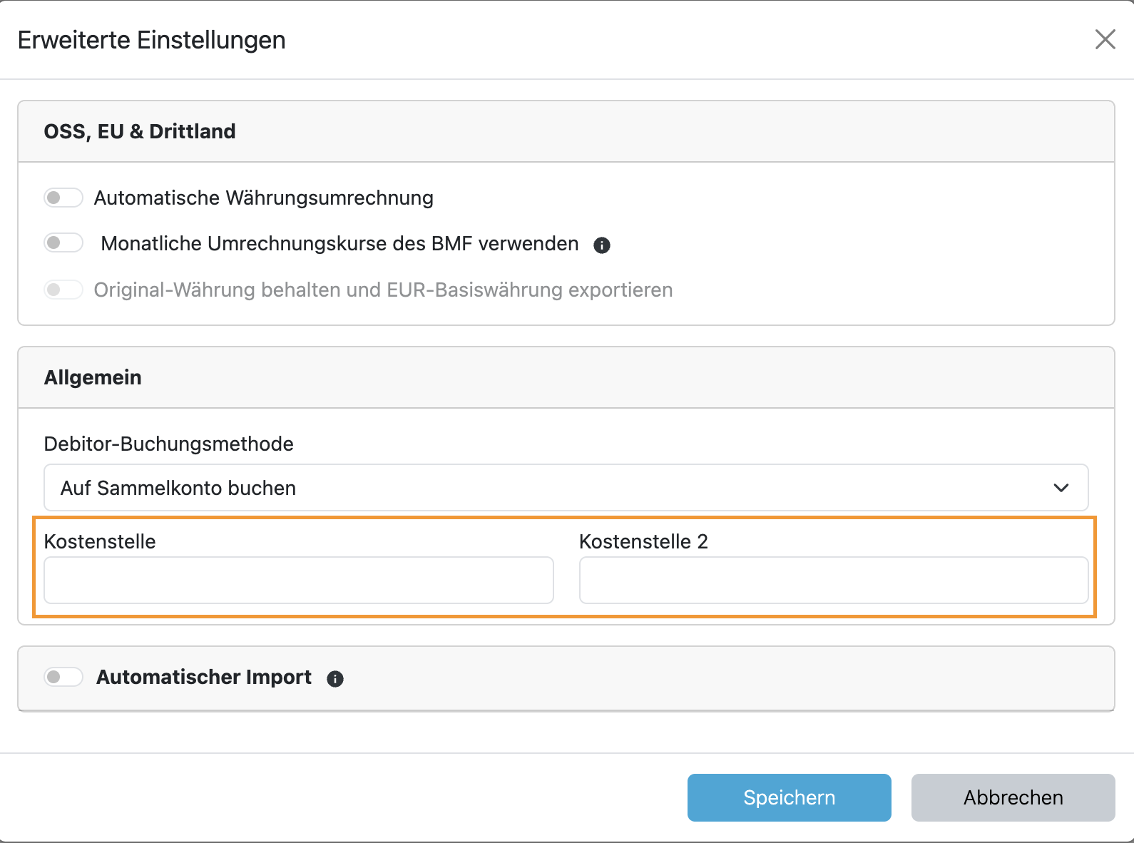 - In dem Bereich Allgemein kannst du die Kostenstelle / Kostenträger eintragen.