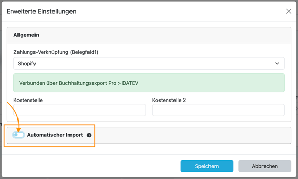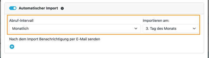 Mit dem automatischen Import werden deine Unzer Buchungsstapel regelmäßig erstellt – monatlich, wöchentlich oder täglich.