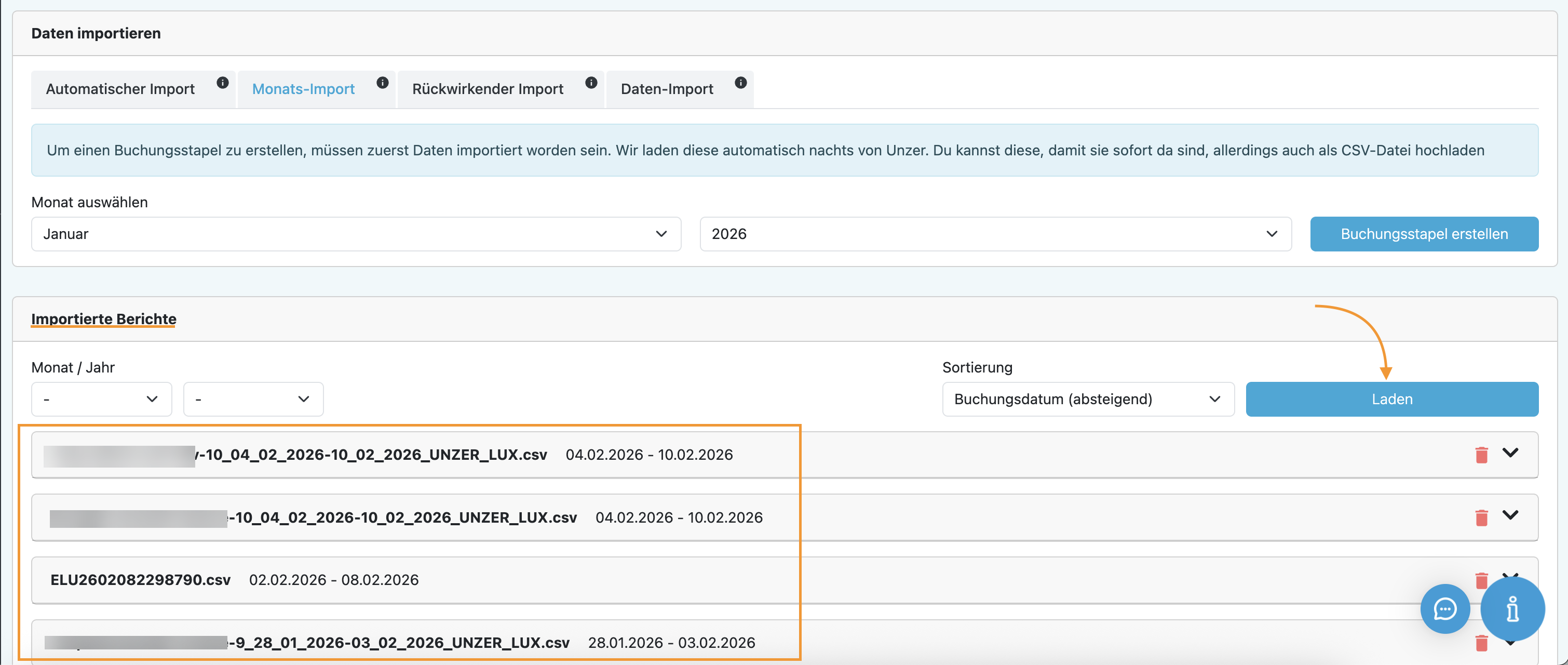 📅 Monats-Import – Buchungsstapel manuell erstellen
