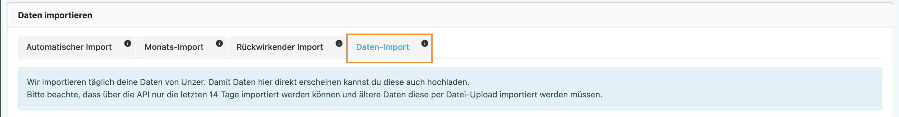 Öffne in der Unzer Integration den Reiter „Daten-Import“