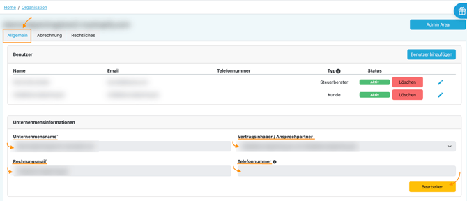- Klicke dazu auf den gelben Button "Bearbeiten" um die Daten zu aktualisieren.
