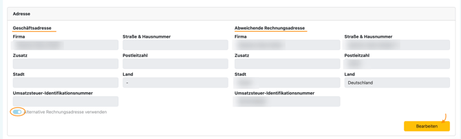 - Zusätzlich kannst du bei "Adresse" eine alternative Rechnungsadresse angeben