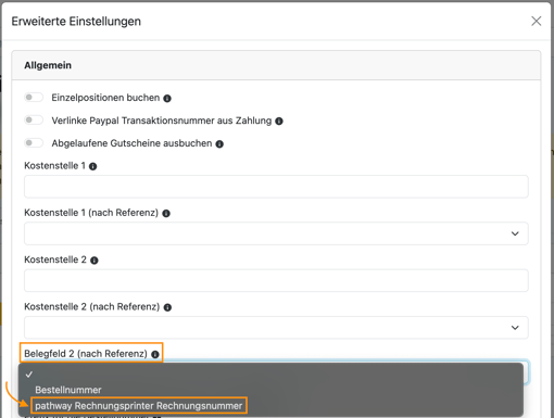 → Die Rechnungsnummer wird direkt im Feld Belegfeld 2 deines Exports angezeigt. -
