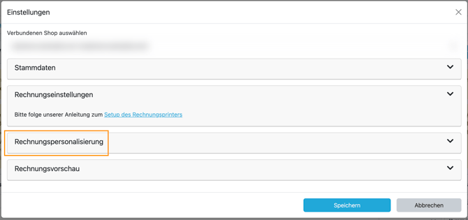 - Öffne den Reiter „Rechnungspersonalisierung“