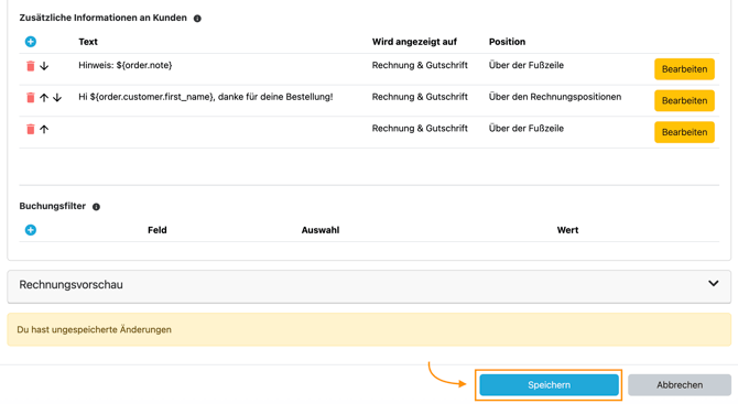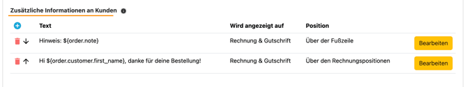 👉🏼 Zusätzliche Informationen (variablen) auf der Rechnung anzeigen lassen.