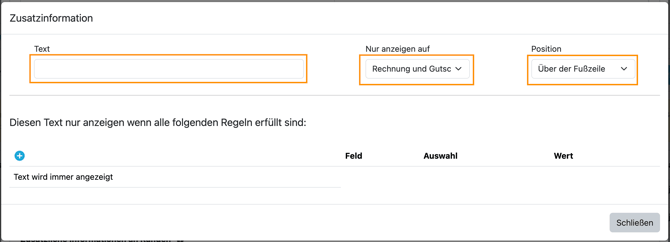 ❓ Kann ich den Text nur auf Rechnungen, aber nicht auf Gutschriften anzeigen lassen?