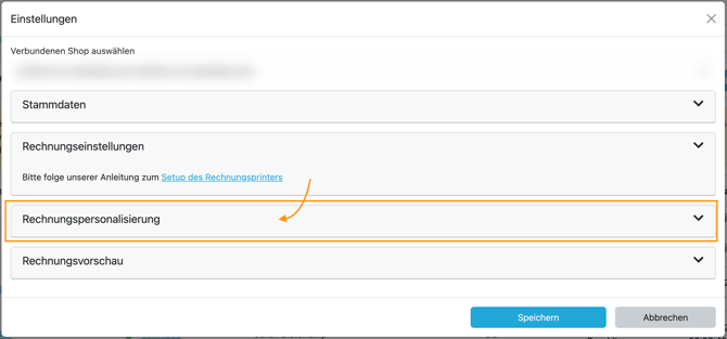 Öffne im Dropdown-Menü den Bereich „Rechnungspersonalisierung“.