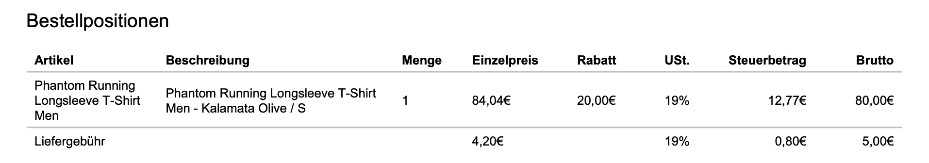 Jede Position auf der Rechnung ist gleich aufgebaut: