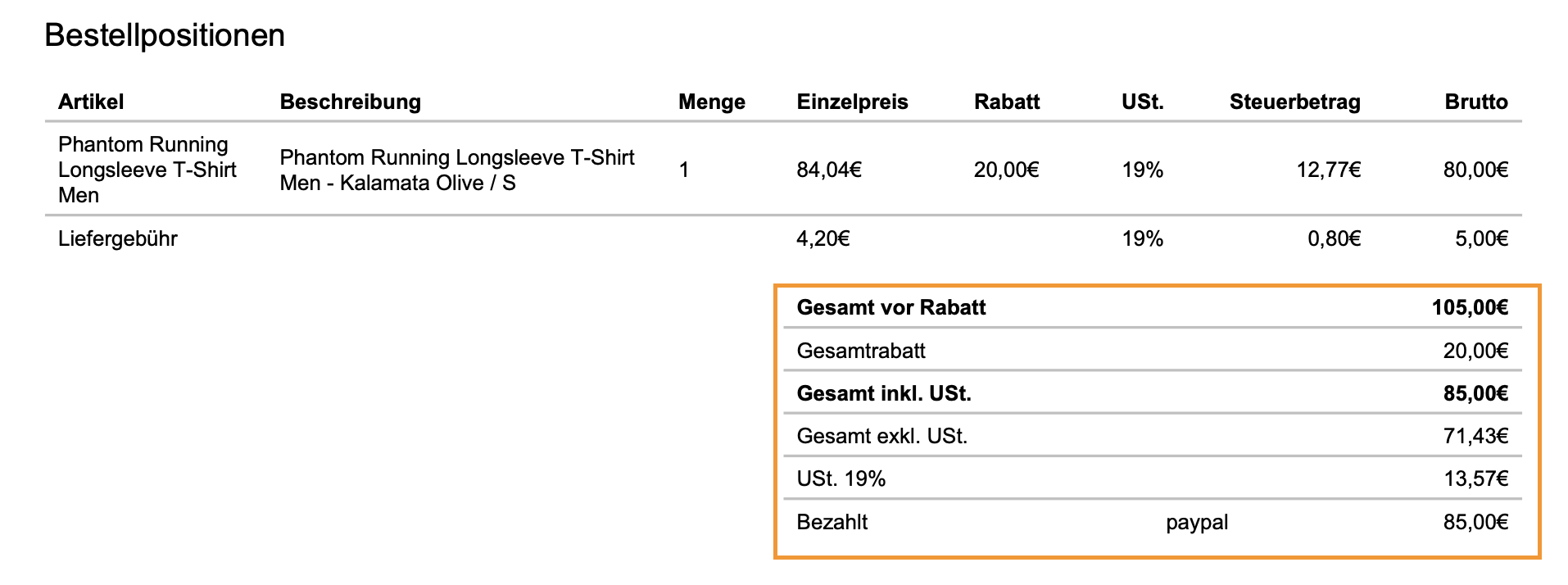 Auf Rechnungen, die über den pathway Rechnungsprinter erstellt werden, werden die Einzelpreise der Produkte netto (ohne Umsatzsteuer) angezeigt.