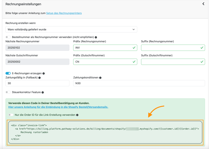 Schritt 1 – Rechnungsprinter-Code kopieren