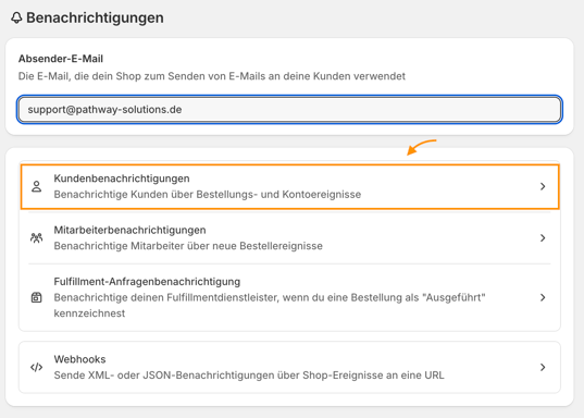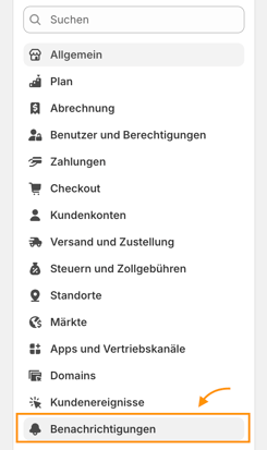 Schritt 2 – In Shopify zu Benachrichtigungen wechseln
