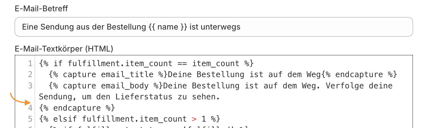 Navigiere im Code zur Zeile 4 (vor {% endcapture %} ENTER drücken).