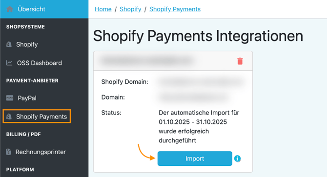 Klicke bei dem gewünschten Shop auf den blauen Button "Import"