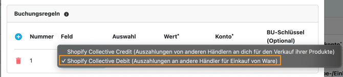 Schritt 3 – Regel für „ShopifyCollective (Debit)“ anlegen