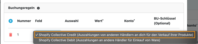 Du hast erfolgreich Buchungsregeln für Shopify Collective erstellt.