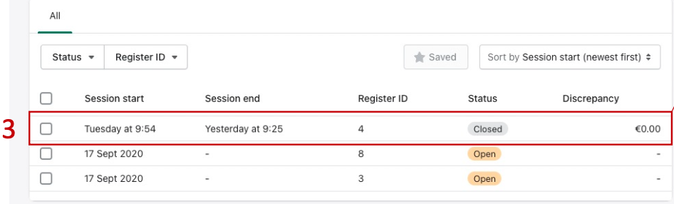 Wähle dort View cash tracking sessions aus.