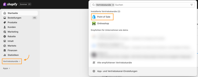 Klicke links im Menü auf Vertriebskanäle und wähle Point of Sale aus.