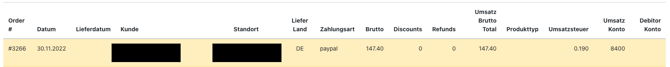 Die Umsätze werden nicht korrekt zugeordnet und es erscheint weiterhin eine gelbe Markierung. Prüfe die exakten Namen im Shop.