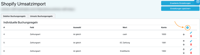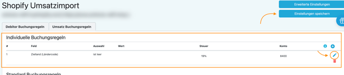 Möchtest du eine bestehende Buchungsregel anpassen, klicke auf den blauen Stift daneben.