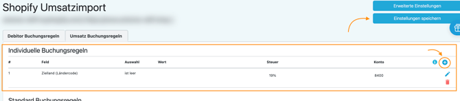 Klicke auf den Reiter Umsatz Buchungsregeln.