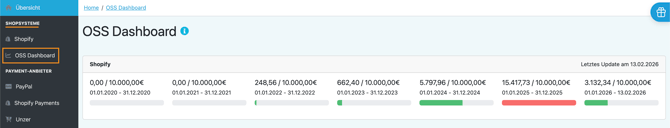 Klicke links im Menü unter „Shopsysteme“ auf „OSS Dashboard“