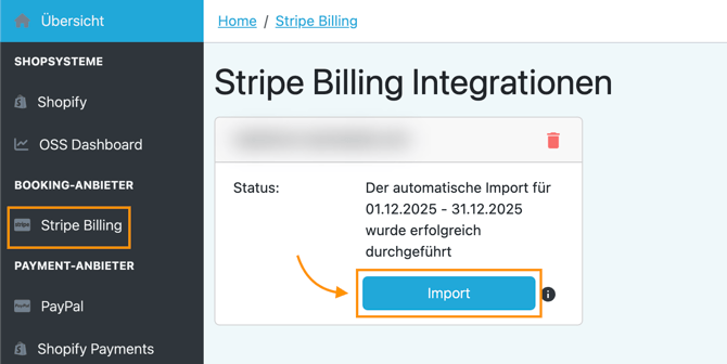 Klicke links im Menü auf „Stripe Billing“ oder „Chargebee“ (je nachdem, welche Integration du nutzt).