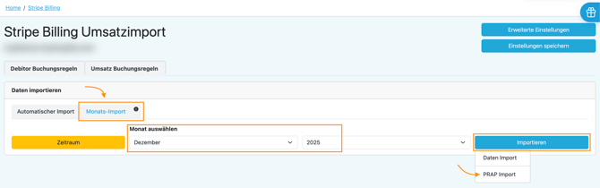 - Klicke bei "Daten importieren" auf den Reiter "Monats-Import"