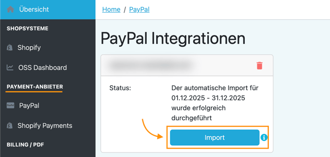 Der automatische Import für deinen Zahlungsanbieter ist jetzt aktiv.