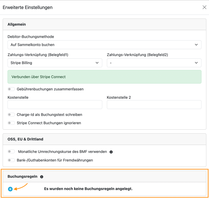 👉 Wenn keine passende Kreditor-Buchungsregel hinterlegt ist, kann der Stripe Payments Buchungsstapel nicht erstellt werden.